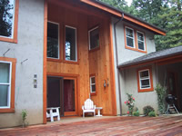 Redwood and Western Red Cedar are the most weather resistant of Western Softwoods. They are excellent for exterior use and make beautiful interior paneling as well.